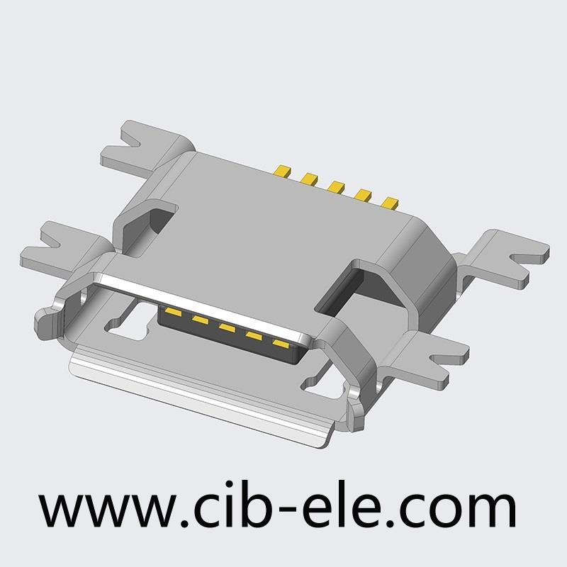 Micro USB BF SMD,沉板0.8mm,四脚DIP,无卷边,20103010,UF-C2A0-B5BH
