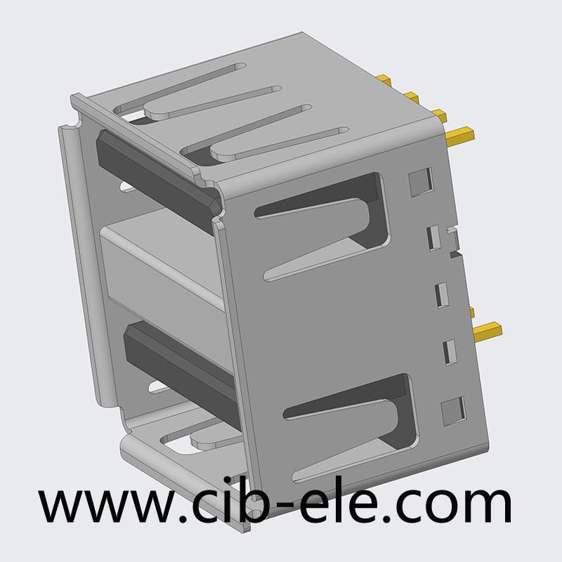 USB 2.0 AF 双层DIP180,卷边,10.5mm,UF-11SA-043X,UF-11SA-043W,UF-11SA-043B,20101034,Receptacle Connector 8 Position,USB-A Stacked