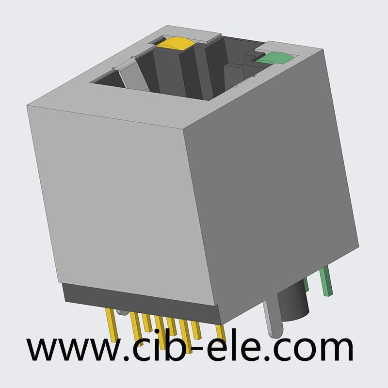 RJ45 LED,8P8C,DIP180度无耳,左黄右绿,20413002,RJ-000-88D-11E,RJ5-D20-882,Modular Jack,Modular Connectors(RJ45)